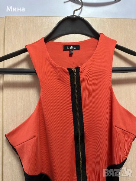 Дамска рокля в черно и оранжево на марка Лилия, размер М.