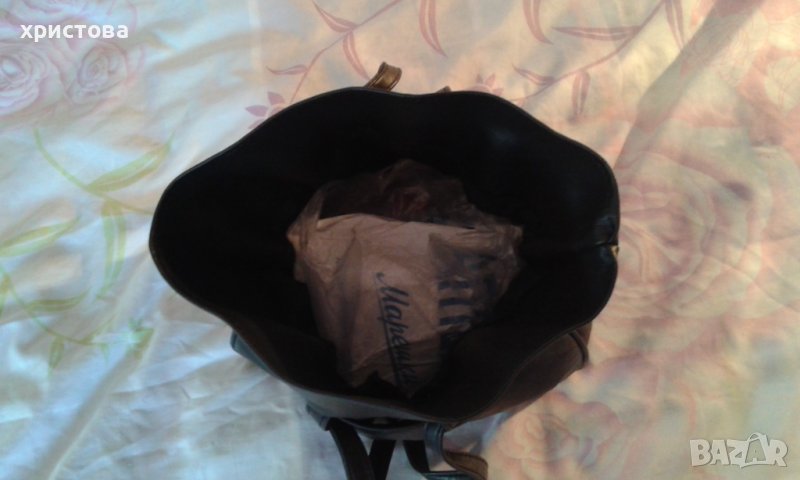 Оригинална чанта от мека кожа.Подплатата и след като се разши я заших грубо на ръка-видно на последната снимка.Размери: Височина-30 см. Ширина-28 см. Ширина дъно-12 см.