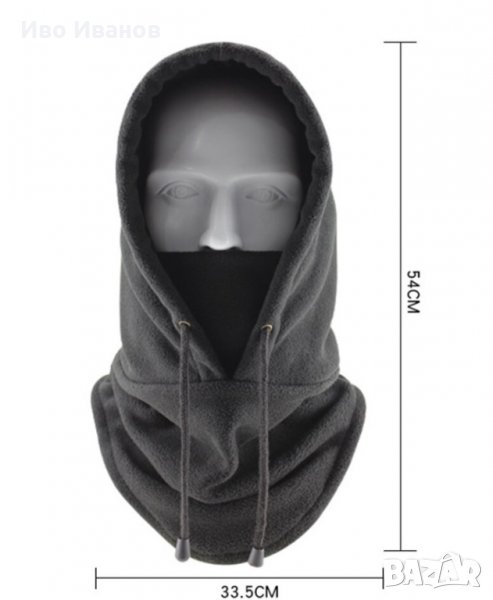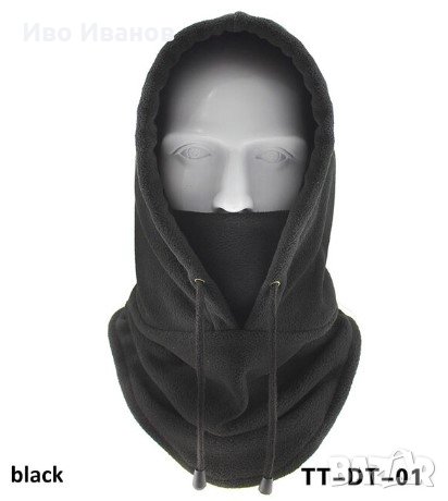 лицето и шията, много мека и приятна материя. Подходяща за ски, лов, туризъм, риблов. Може да се регулира. Цвят-черен.