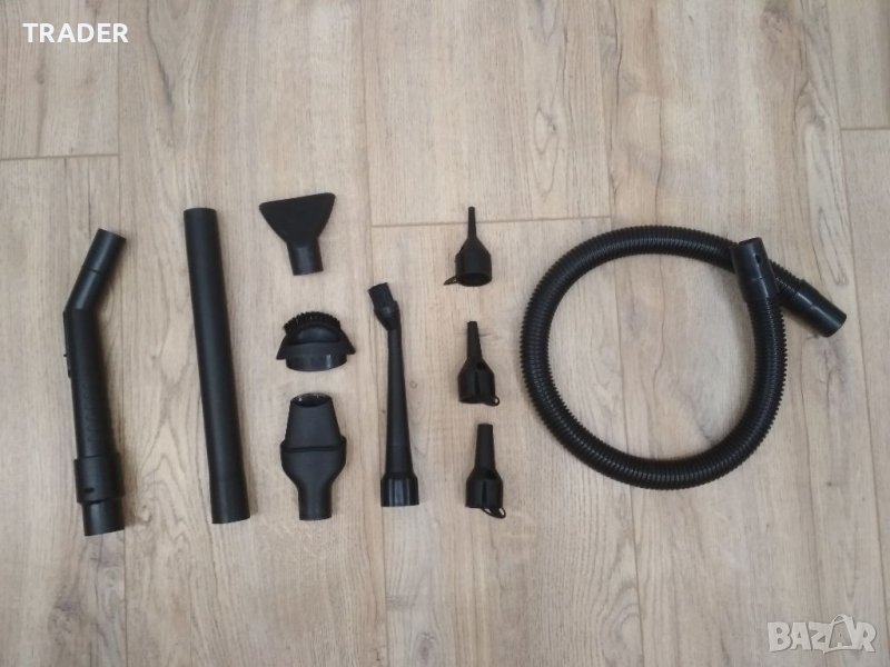 2 . Комплект от 10 части накрайници и маркуч за трудно достъпни места. Външен диаметър на маркуча 3см. Право парче преходник 3.1см вътрешен диаметър от единия край, от другия край външния диаметър е 3см. Крив адаптер преходник с регулиране на въздушния поток, от едната страна вътрешен диаметър 3.1см от другата 3.4см външен диаметър. Цена за комплекта 29.90лв