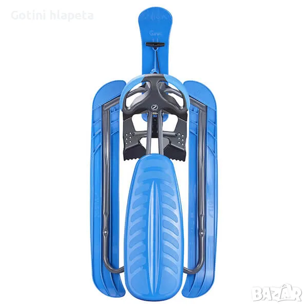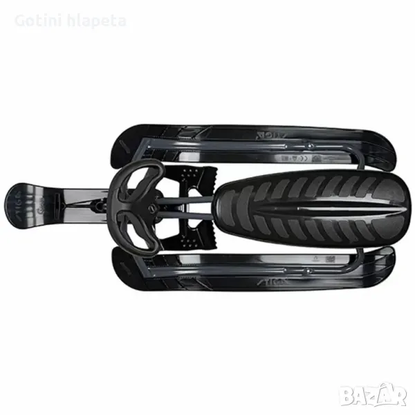 Ските на шейната са с двустранни върхове – отпред и отзад. Предната ска е с извит и разширен връх за подобрена маневреност. Воланът е ергономичен, със зони за удобно и сигурно захващане. При всяко спускане се налага и да намалявате скоростта – спирачките се намират под кормилото и се натискат най-удобно с колена.