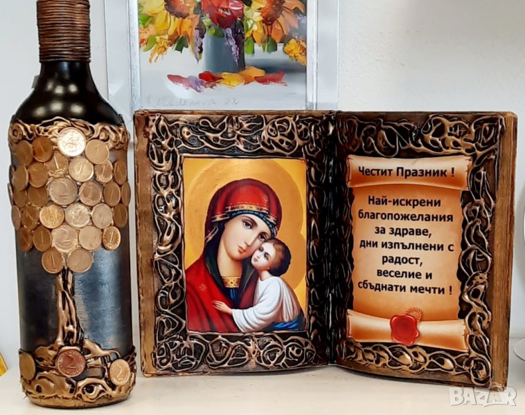 Книга - икона с Исус, Св. Мина, Богородица или Св. Николай с оригинално пожелание за всякакви празнични поводи и празници на мъж, жена или семейство, юбилей - 50, 60, 70, 80 или 90 години на мъж или жена .