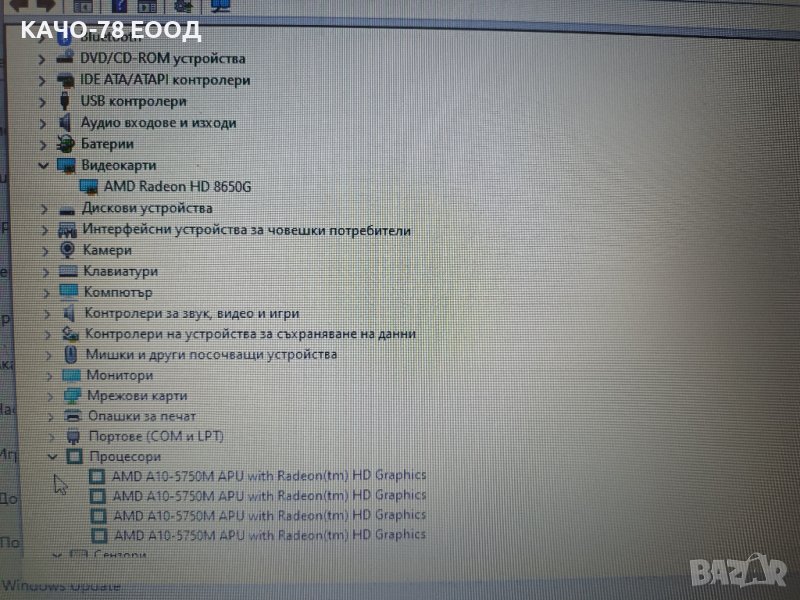 Лаптопът е минал профилактика (почистен, сменена термопаста, преинсталиран), готов за работа.