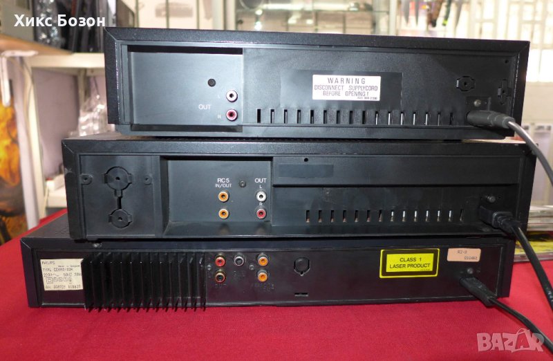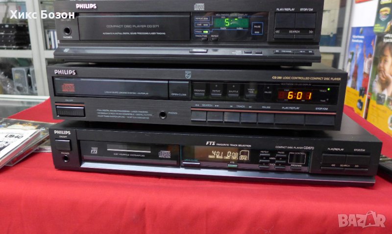 3.Philips CD 670 цена 500.00 лв топ DAC-а TDA1541A,CDM 2/10 с безчетков мотор. Прекрасен,тънък,стилен,красив плейър с отличния звук на 6-серия плейъри на Филипс.Много красив,подробен,нежно светещ дисплей.Има оригинално дистанционно.