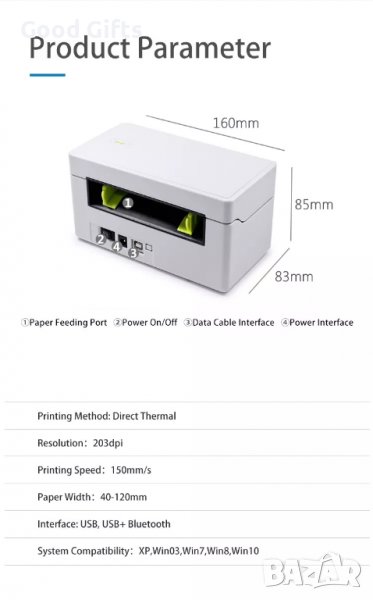 4 инча Безжичен Лейбъл принтер