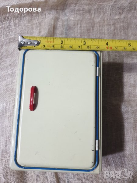 Старинна метална играчка-хладилник.Размери - 13 х 9 см.Изключително запазен,без забележки.