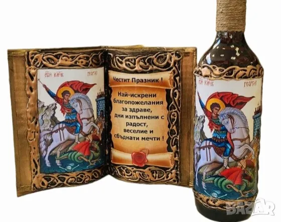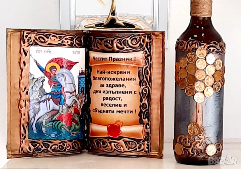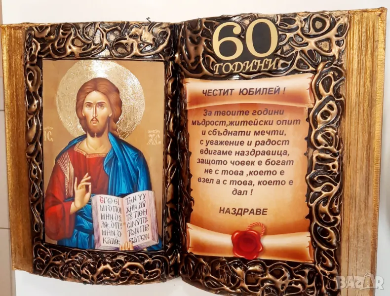 Авторски комплект от книга - икона и бутилка с Исус с оригинално пожелание.Размер книга : 21 /27 см.
