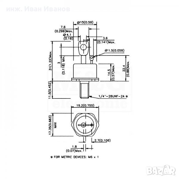 Тиристор КТ 705 400V , 15A Тесла - ЧехословакияTesla KT 705 15A 400V TO65