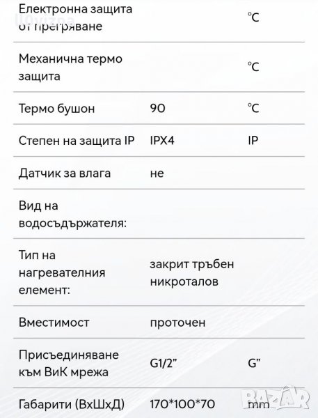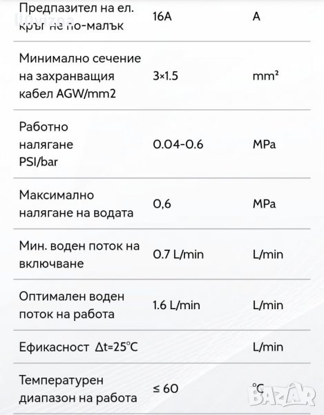 Максимално налягане на водата: 0,6 MPa