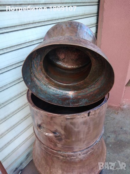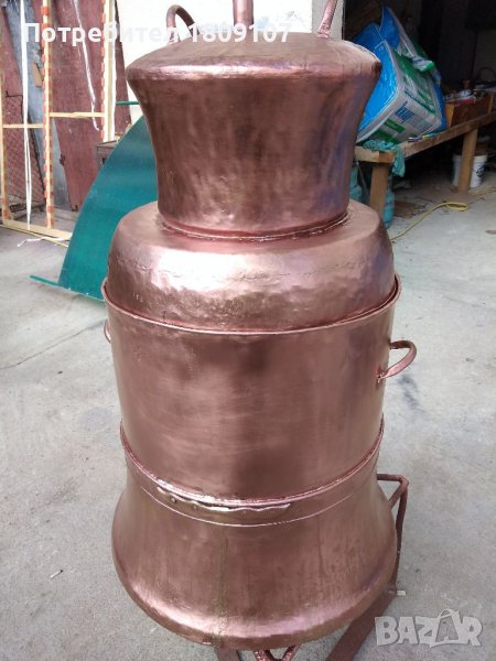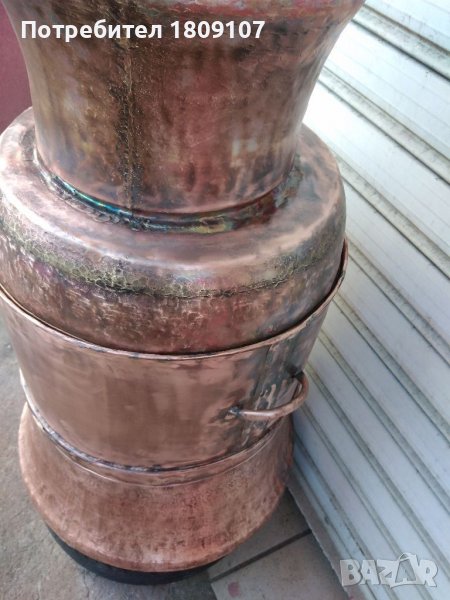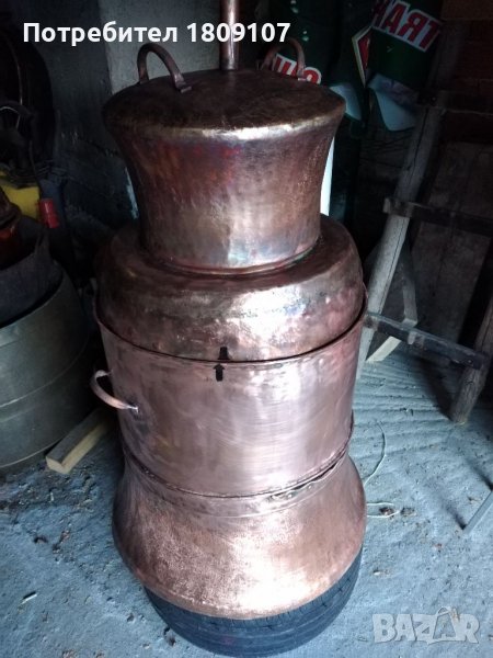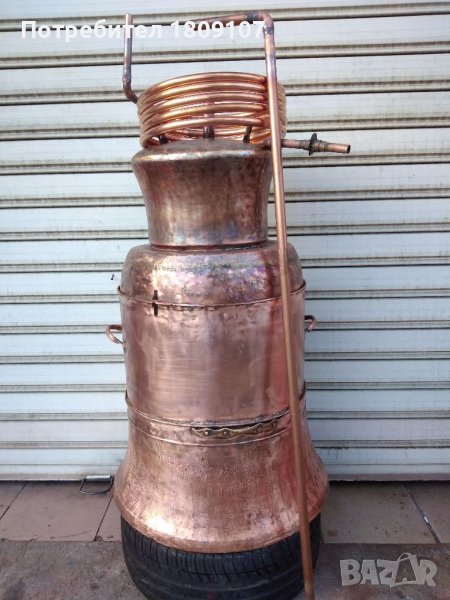 Меден казан в отлично състояние без никакви забележки комплект с лула и серпентина. Казана е дебелостенен тежащ над 25 кг чиста мед които говорят за дебелината на ламарината, Долната част на казана е от едновремешните майстори и материал 2 мм дебелина на ламарината, Горната част на казана