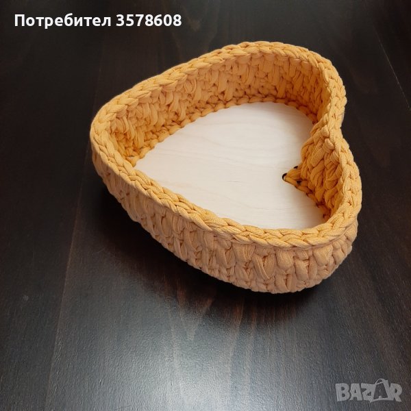 Ръчно плетен панер сърце с дървена основа → Обява 39098324