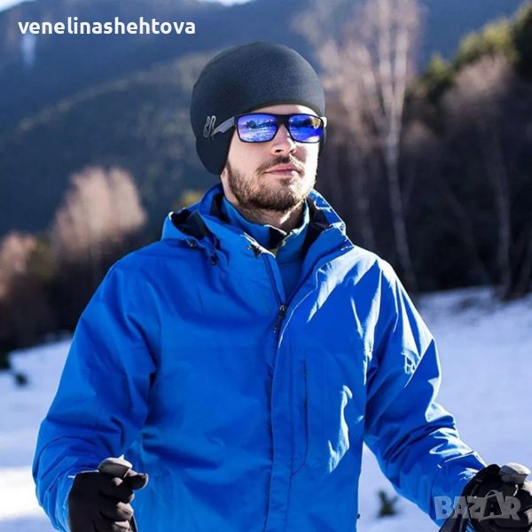 Зимна тънка, ветроустойчива шапка от лек полар с процеп за очила, подходяща за носене под каска,идеално прилепваща по главата.