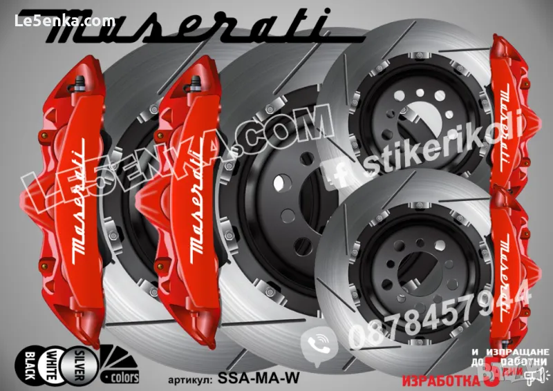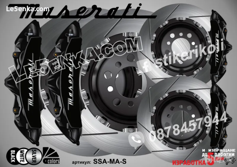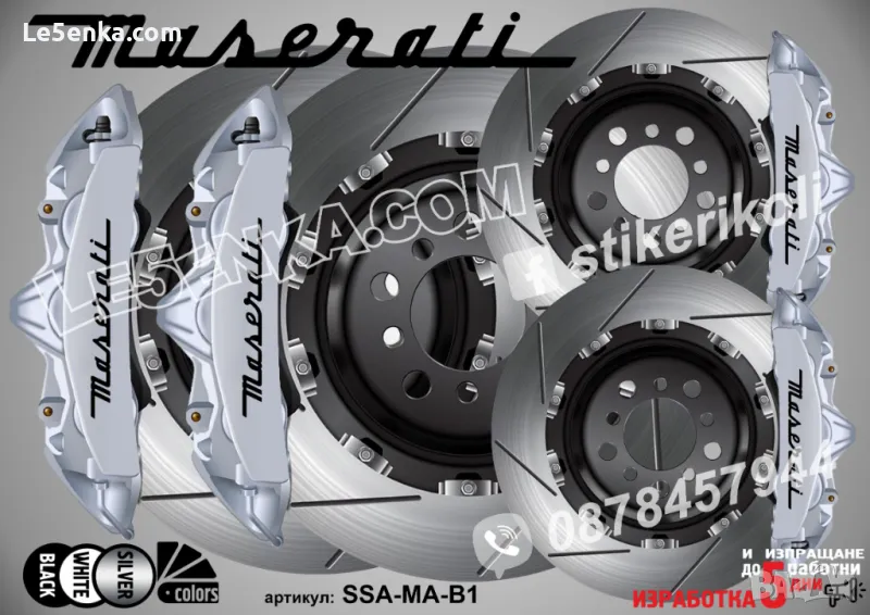 Надписите са изработени от качествено автомобилно фолио. Могат да се лакират. Цената е за комплект от 4 бр. от една и съща разцветка - бяло, черно или сребърно. Размерите на предните са 14 см., а на задните 9 см. Спирачните апарати са различни модели и големини, поради това моля съобразете дали тези размери са подходящи за вашите апарати - при възможност и с уговорка е възможно, размерът на надписите да се измени.