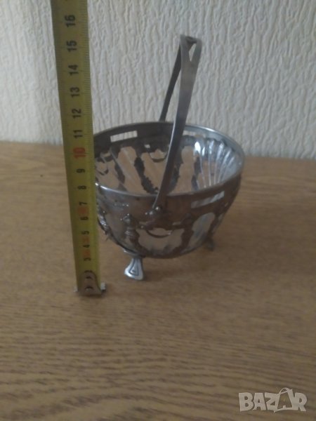 посребрена метална бонбониера арт нуво,стъклен съд.състояние видно на снимките.