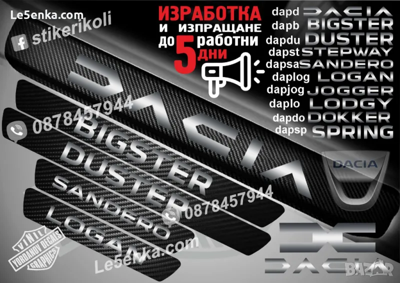 ПРАГОВЕ карбон DACIA DOKKER фолио стикери dapdo → Обява 39108363