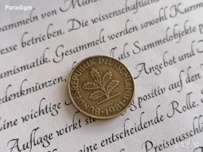 Монета - 10 пфенига от 1981г.; серия F
