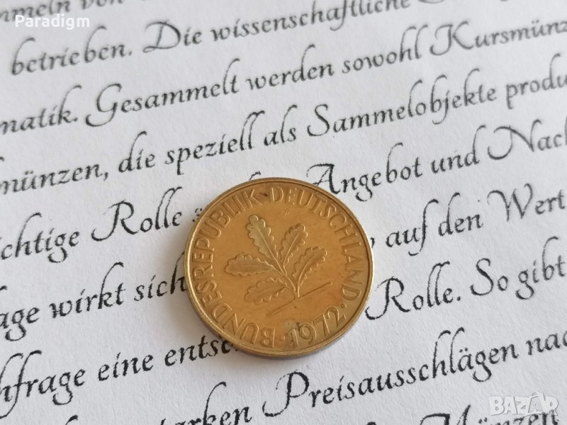 Монета - 10 пфенига от 1972г.; серия F