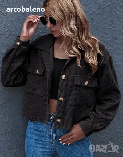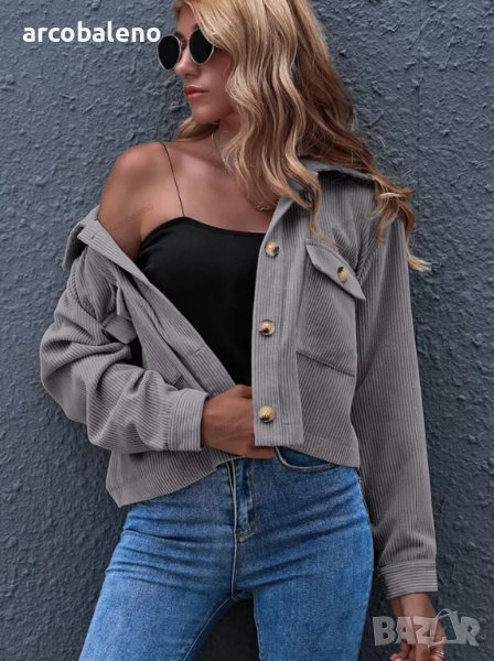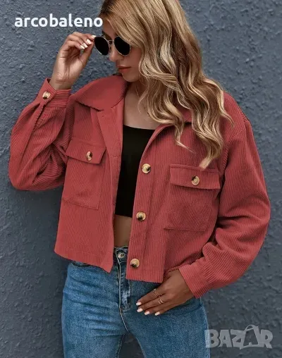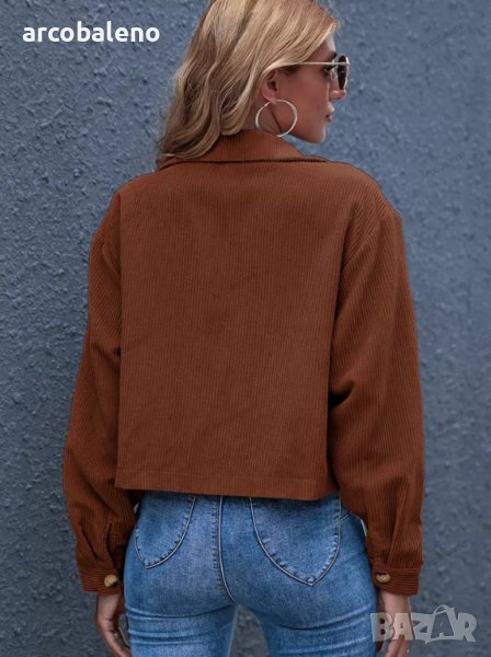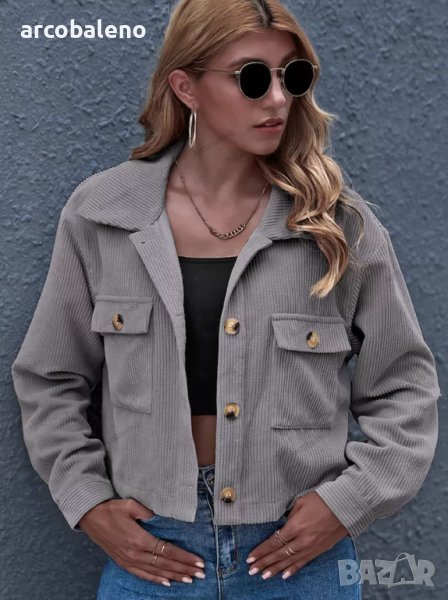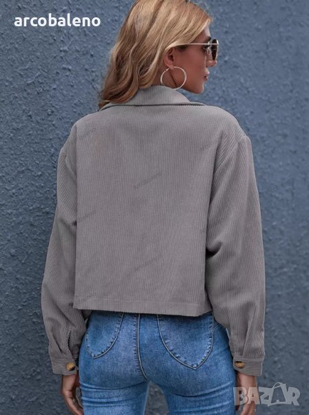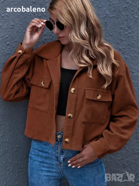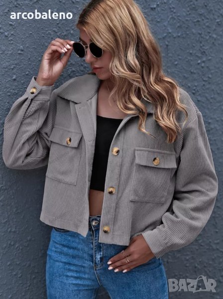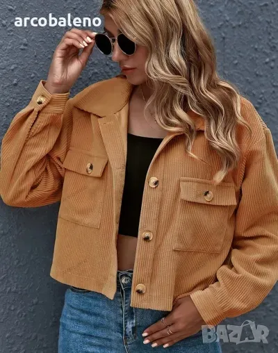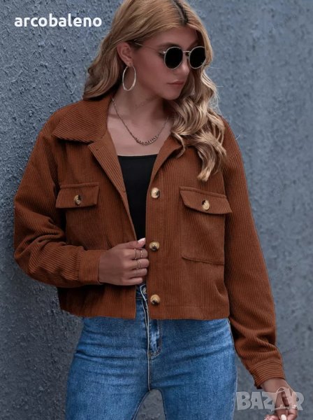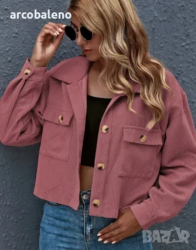 Дамско едноцветно яке от рипсено кадифе с яка и предни джобове, 8цвята