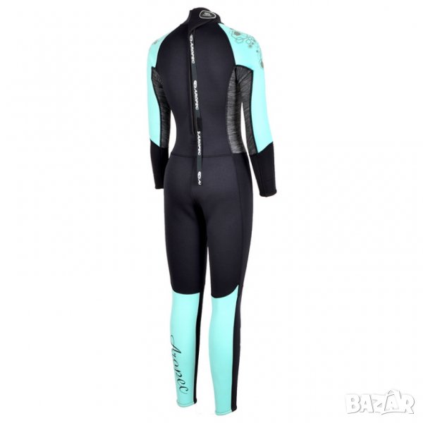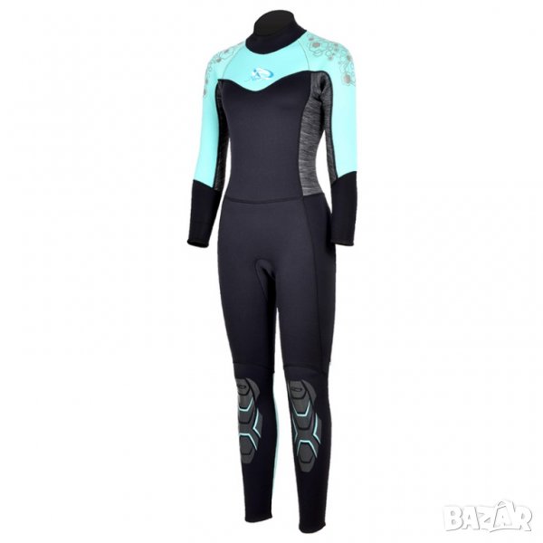 Еластичен, с женствена форма и добре прилягащ към тялото дълъг неопрен със заден цип. Изработен от 2.5мм еластична материя, с разтегливи панели за повече свобода на движението, плоски шевове, връзка за лесно вдигане и сваляне на ципа