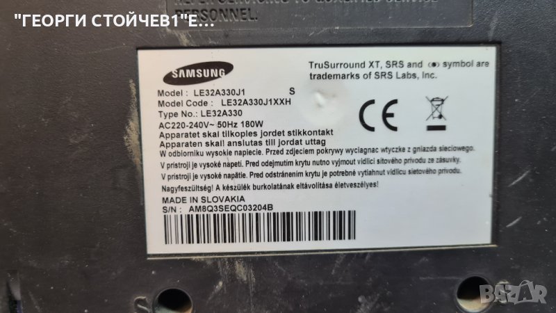 LE32A330J1  гаранция 6м., снимка 1 - Части и Платки - 39114045 LE32A330J1  гаранция 6м., снимка 2 - Части и Платки - 39114045 LE32A330J1  гаранция 6м., снимка 3 - Части и Платки - 39114045 LE32A330J1  гаранция 6м., снимка 4 - Части и Платки - 39114045 LE32A330J1  гаранция 6м., снимка 5 - Части и Платки - 39114045 LE32A330J1  гаранция 6м., снимка 6 - Части и Платки - 39114045 LE32A330J1  гаранция 6м., снимка 7 - Части и Платки - 39114045 1/7