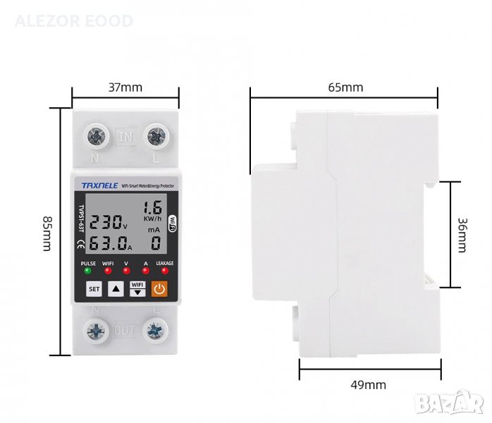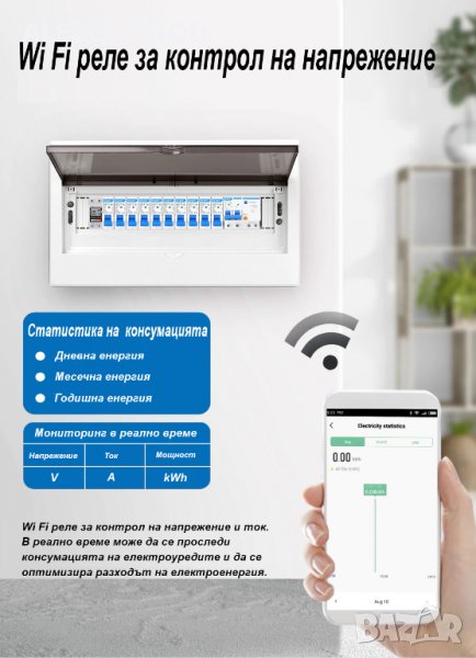 Wi Fi реле за контрол на напрежение и ток до 63А, 20204212