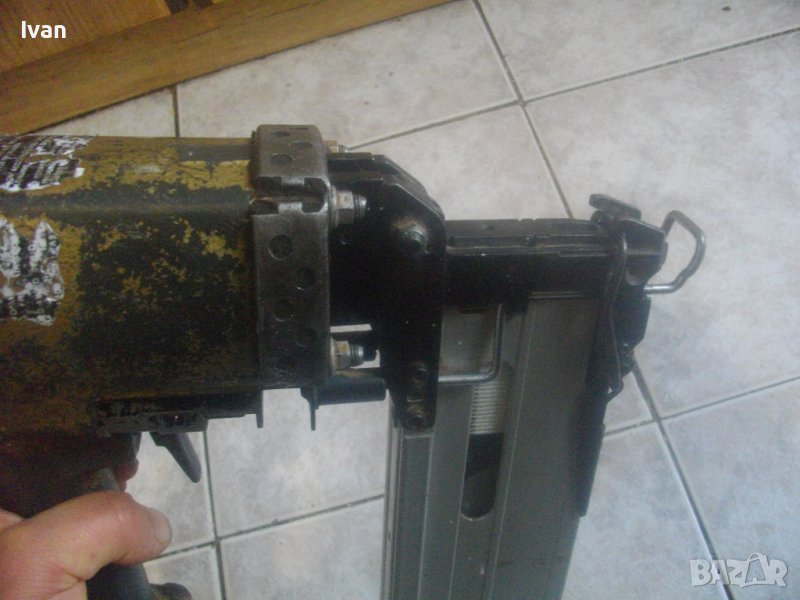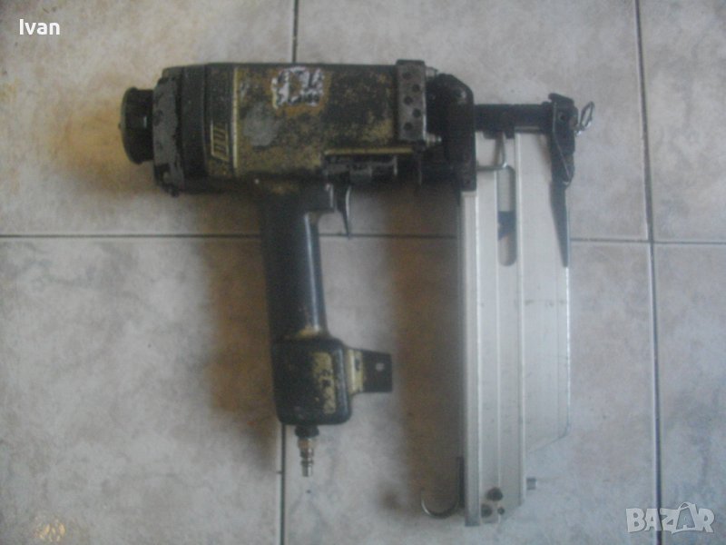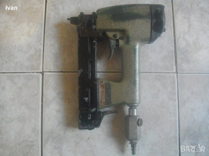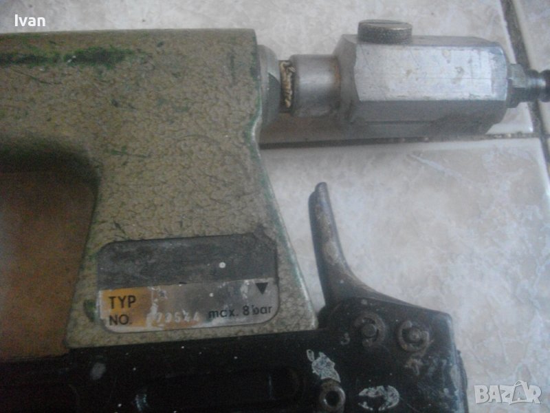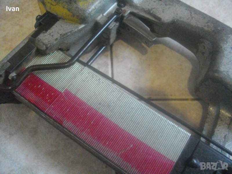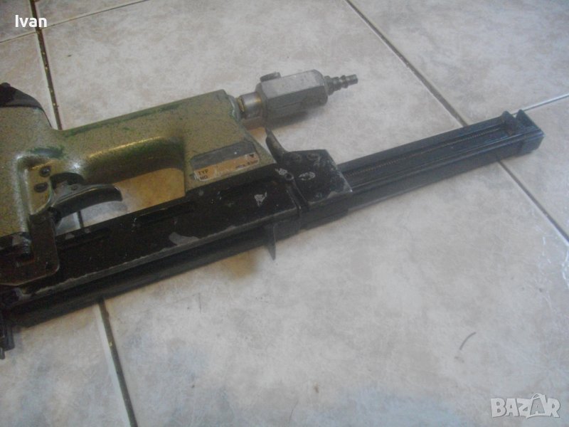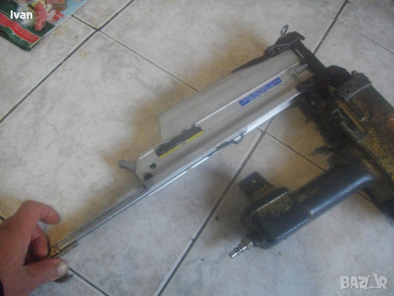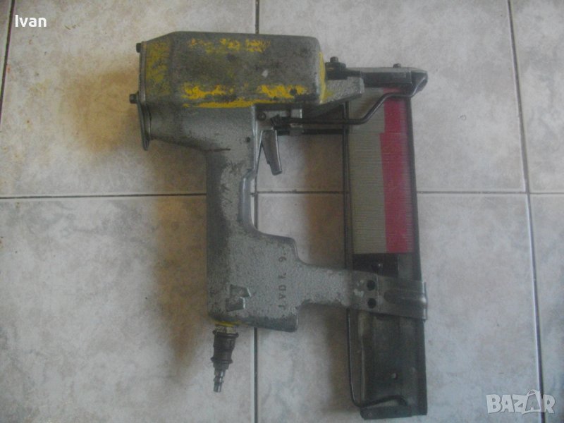 ОПИСАНИЕ на голям такер с метален пълнител - цена 199 лв. Индустриален/промишлен. Означение на такера - J.VDT. 9. Наличен адаптер/бърза връзка за компресор. Метален изцяло. Поставени скоби в пълнителя празмер 65 мм дължина около 50 бр. Добро техническо/работно състояние. Забива докрай добре. Силен и мощен удар.