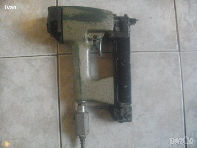 ОПИСАНИЕ на малък такер - 159 лв- ползван, работно техническо състояние - добро. Работи ,забива дбр докрай, силен удар. За компресори налягане макс 8 бара.Такера е за скоби размер до 28 мм. Поставена на такера бърза връзка/адптер за скачване с маркуч на компресор.