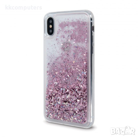 Силиконов кейс MBX Liquid с течност и брокат, За iPhone 14 (6.1), Розов
