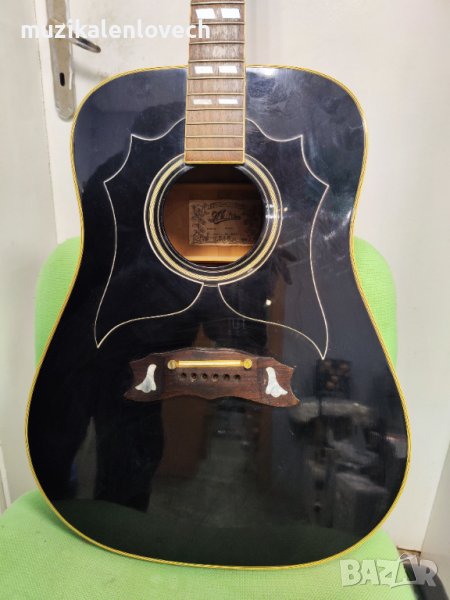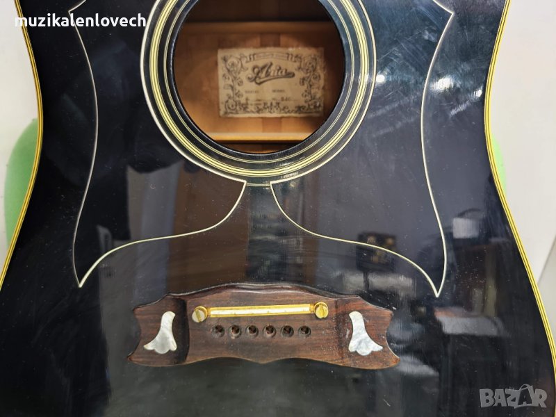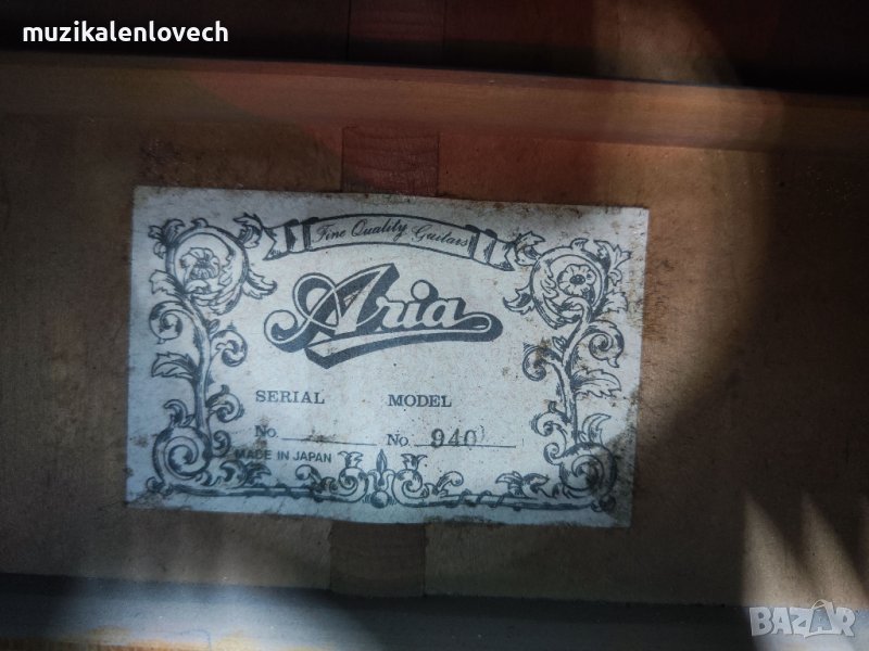 Китарата е произведена в стил на легендарния модел на Martin d 28 - Произведена изцяло от масивни дърво - бял смърч, розово дърво, махагон. Изцяло масивно дърво, това е отлично копие на Martin D28 - прекрасен тон и свири наистина добре. Тези китари са рядкост за виждане в това състояние, така че се запознайте с този красив пример за производство на японска китара от 70-те години на миналия век.Този екземпляр липсва в каталога на Aria, тъй като е произведен на базата на модела 9400, но е Custom надграден.Произведено в Япония.Много добро състояние за годините си.Махагонов гръб и страни, Топ от Бял Смърч, Гриф от розово дърво, ключовете също са надградени и не са базовите за модела.Много сладък тон, страхотна китара като цяло от ерата на страхотното дърво и страхотните японските умения.--------------------------------------------------------------------------------------------МОЛЯ ВИЖТЕ СНИМКИТЕ!!!За повече въпроси и информация през системата на Базар или на Вайпър - 0894/341-978