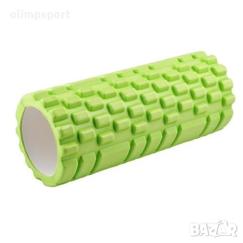 Фоумролерът представлява цилиндрична ролка с релефна повърхност, която може да бъде използвана за самомасаж на мускулите преди и след тренировка, и за различни упражнения по време на тренировка. На редовно спортуващите упражненията с фоумролера помагат за намаляване на мускулната треска, отпускането и предпазването на мускулите от разтежения, а за не толкова активните - възможност да се чувстват добре след дългия работен ден, който са прекарали седнали като облекчат болките в гърба и кръста. Упражненията с фоумролер се явяват един вид самомасаж на основните мускулни групи в дълбочина, който значително подобрява възстановителните процеси и връща нормалния тонус на мускулите. Релефният фоумролер е подходящ и в борбата с целулита, като спомага за неговото разбиване. Фоумролерът се използва при тренировките по пилатес, йога и стречинг, както и за рехабилитация и физиотерапия. Цвят - зелен. Размери - 33 х Ф13 см. Тегло за 1 брой - 750 г.
