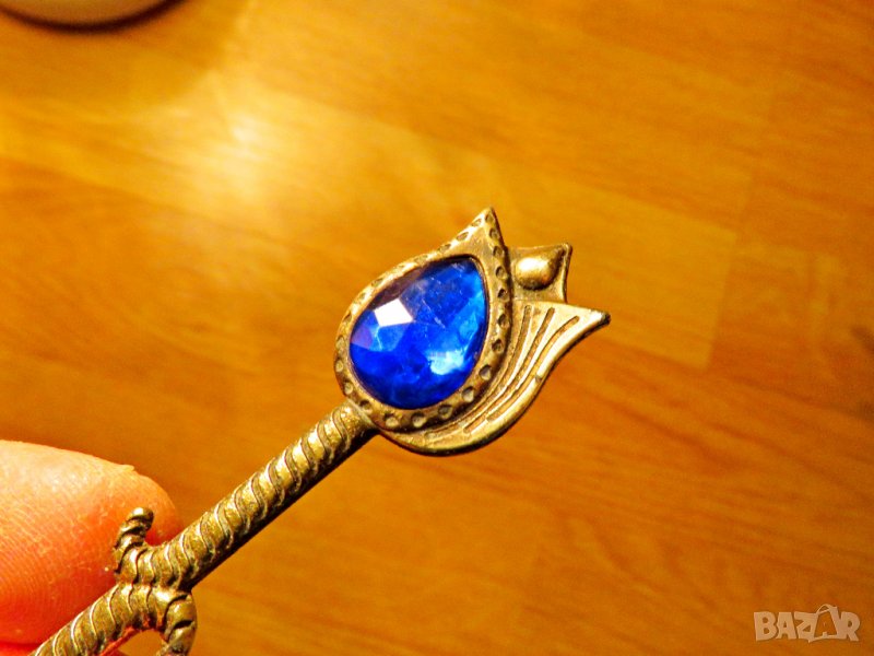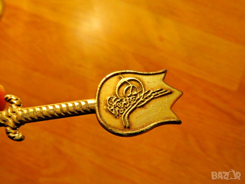 Старинна бронзова лъжица за захар, шекер с османска тугра, тура - за колекционери и ценители
