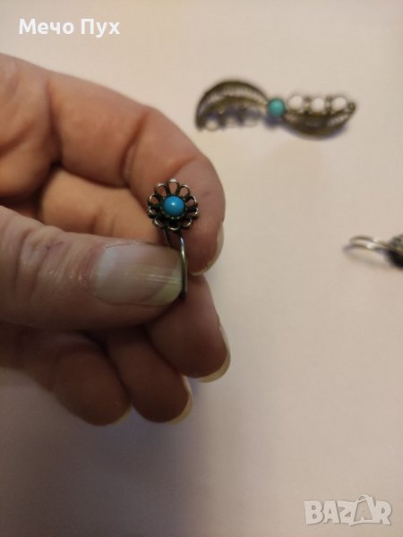 Стар сребърен комплект от брошка,обеци и пръстен.