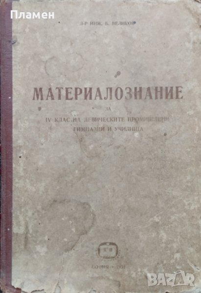 Борис Великов - Материалознание за 4-ти клас на девическите промишлени гимназии и училища -издание 1951г. с твърди корици -5 евро.
