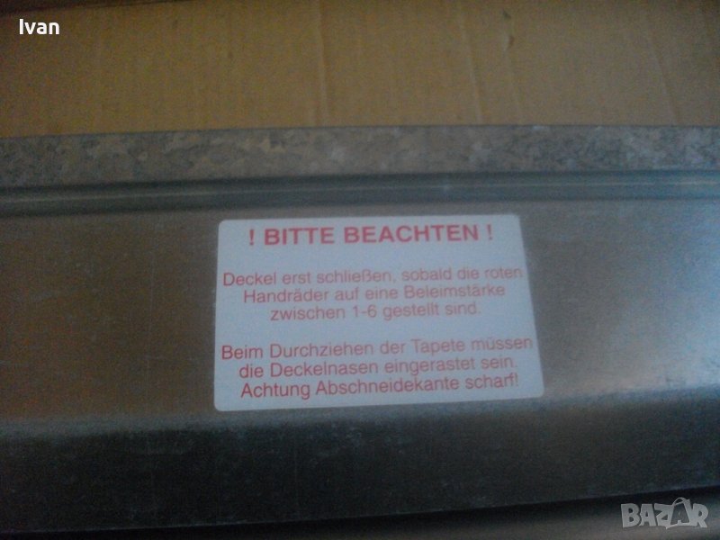 Цена на машината залепяне тапети едноцветен кашон - немска - 139 лв. НАЛИЧЕН 1 БРОЙ.
