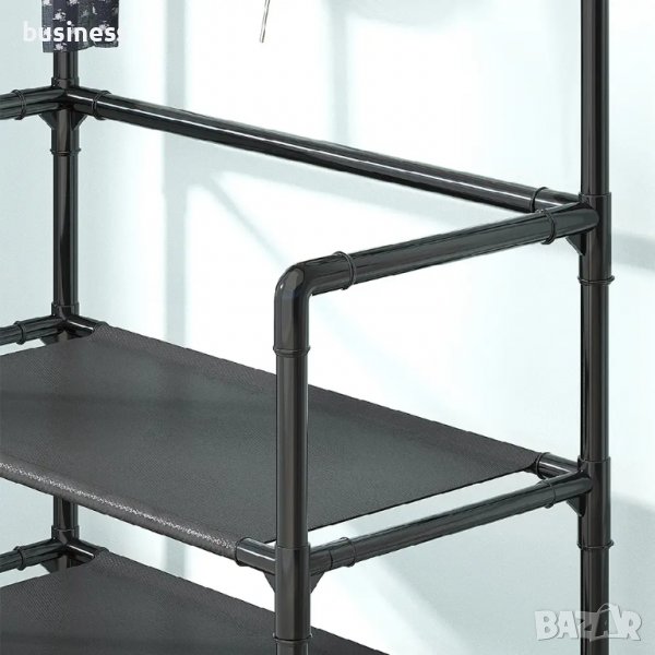 Компактна закачалка за дрехи в стила на минимализма ще бъде чудесно решение на проблема с организирането на вашите неща.Рафтът за дрехи, обувки и аксесоари е изработен от неръждаема стомана, който се сглобява за 5 минути без инструменти. И за монтаж не е необходимо да пробивате стените. Сглобява се много лесно без допълнителни инструменти, болтове, винтове и крепежни елементи. Тръбите на стелажа се свързват с помощта на специални скоби, които са включени в комплекта. Основните тръби са изработени от неръждаема стомана със специално покритие.Дизайнът е лаконичен и универсален. Идеално ще се впише както в обикновен коридор, така и в нов модерен дизайн. Долните му рафтове са изработени от нетъкан текстил, така че ако е необходимо, те могат да бъдат премахнати за измиване или заменени с нещо, което подхожда повече на вашия интериор.