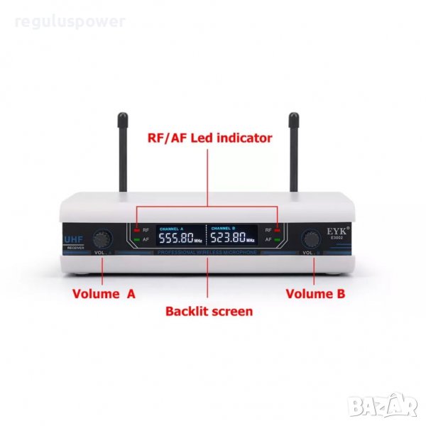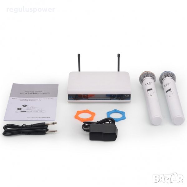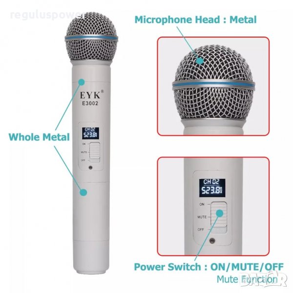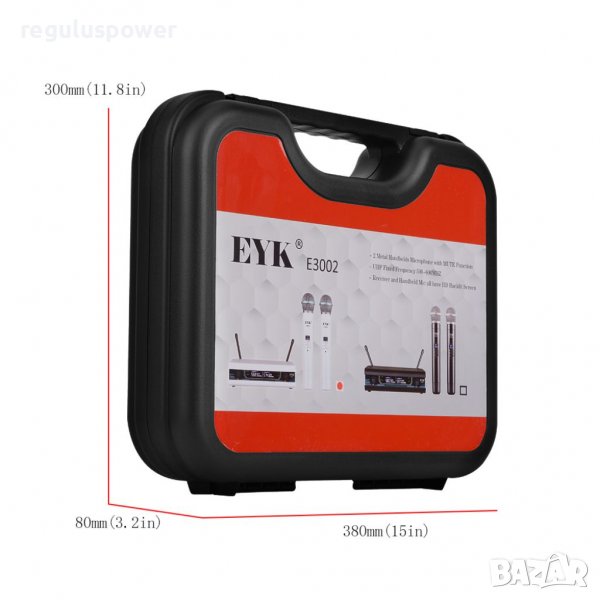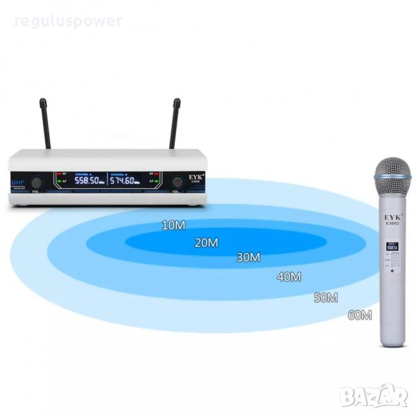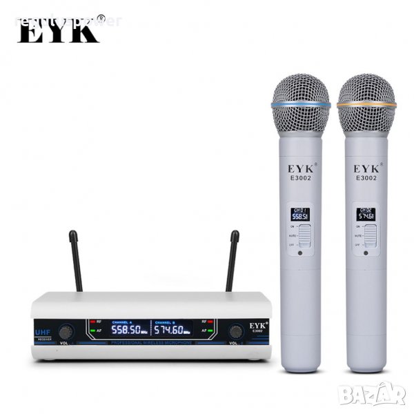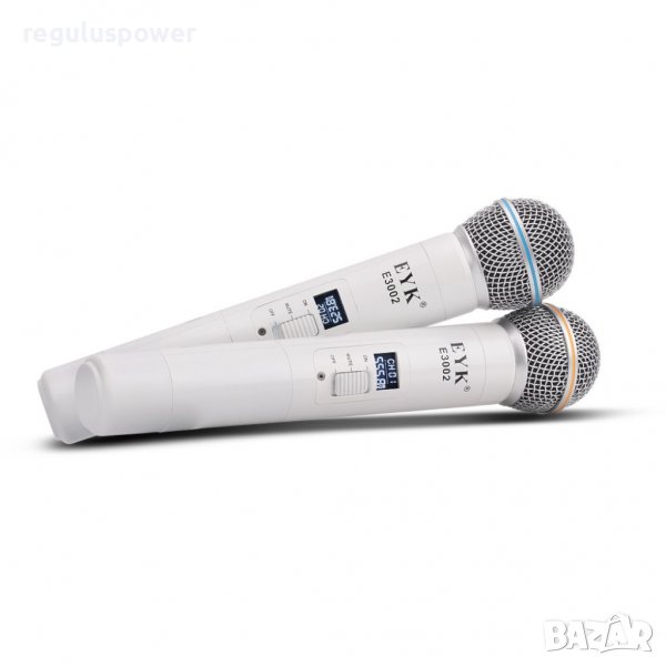 Безжична микрофонна UHF система EYK-E3002W, 2 мет. микрофона, обхват до 60 м, функциия Mute