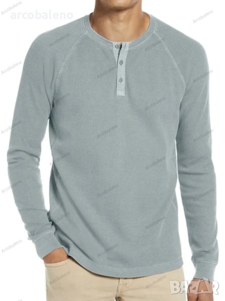 Нова мъжка тениска Henley с кръгло деколте и дълъг ръкав, 6цвята