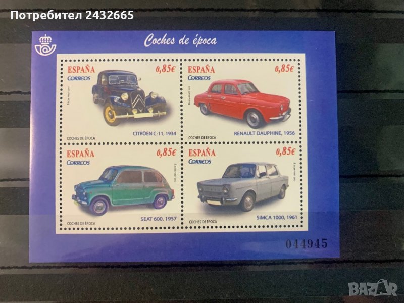 1326. Испания 2012 ~ “ Транспорт. Автомобили :Vintage cars. ”,**,MNH