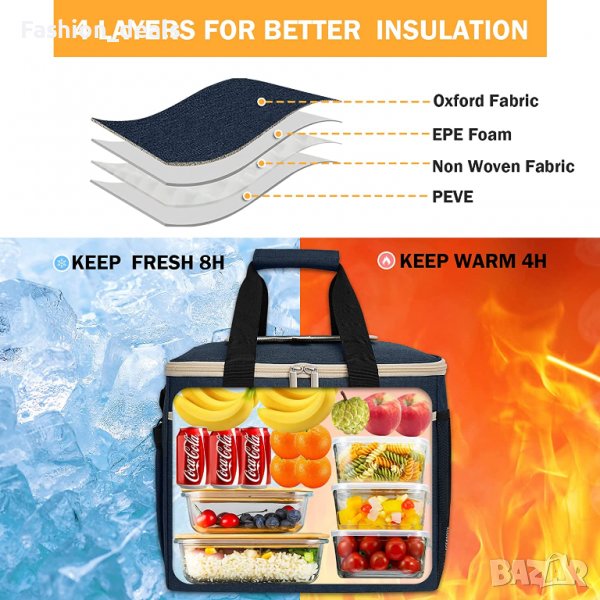 Вграден среден слой от EPE пяна и подплата осигуряват допълнителна изолация, позволявайки да поддържа храната или напитките студени до 12 часа