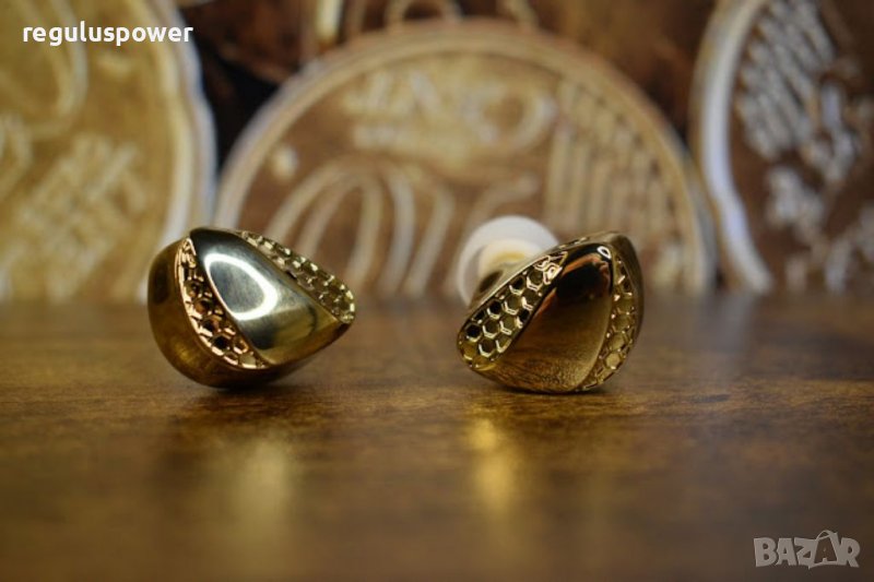 IEMs дизайнерски слушалки монитори, метални, цвят чисто злато, кабелни.