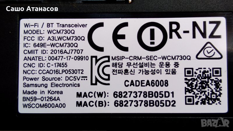 Wi-Fi/BT Transceiver : BN59-01264A / WCM730Q - 25лв.
