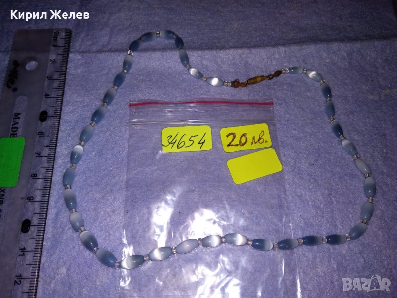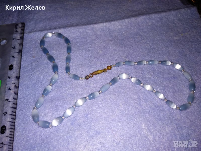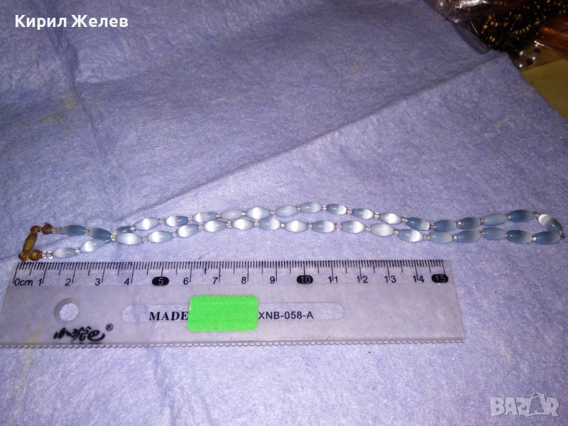 СТАРИННО ФИНО СТИЛНО КОЛИЕ ПОЛИРАНО СИНЬО КОТЕШКО ОКО МЪНИСТА и БРОНЗ 34654