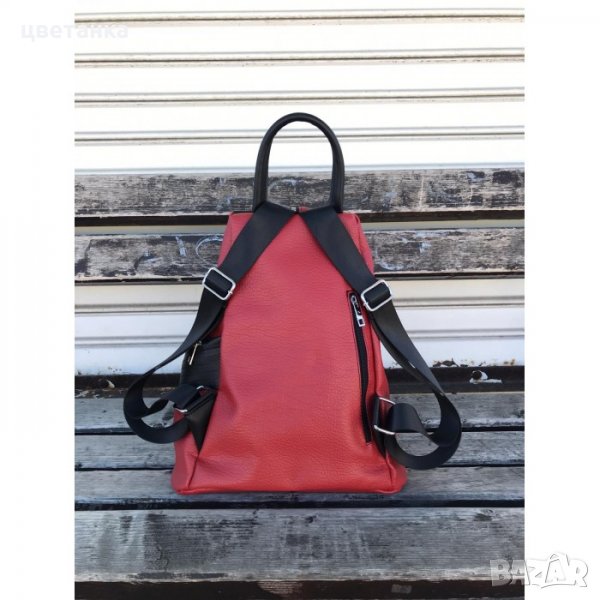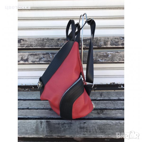 Червена дамска асиметрична раница от еко кожа. Привлекателна червена раница която ще подхожда на всяка дама и ще бъде идеално допълнение за градския ви стил. Това е раница която ще ви се иска да я вземете навсякъде с вас. Удобно разпределение и качествена изработка.