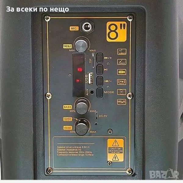 - Мощност: 8 инчов басов говорител