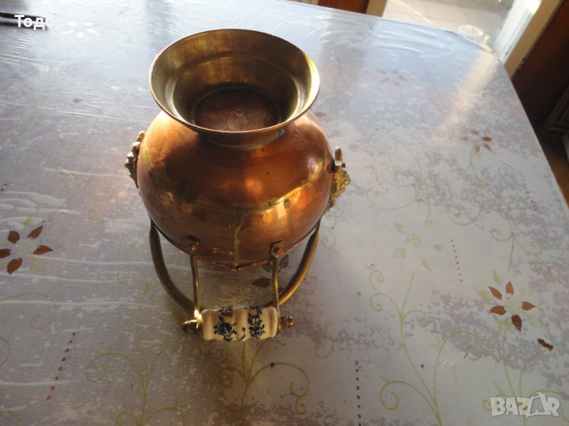 Страхотна ръчна изработка от мед бронз и порцелан Диаметър на основата 9,5 см Височина без дръжка 15 см с дръжка 22 см Прекрасно запазен Отлично състояние
