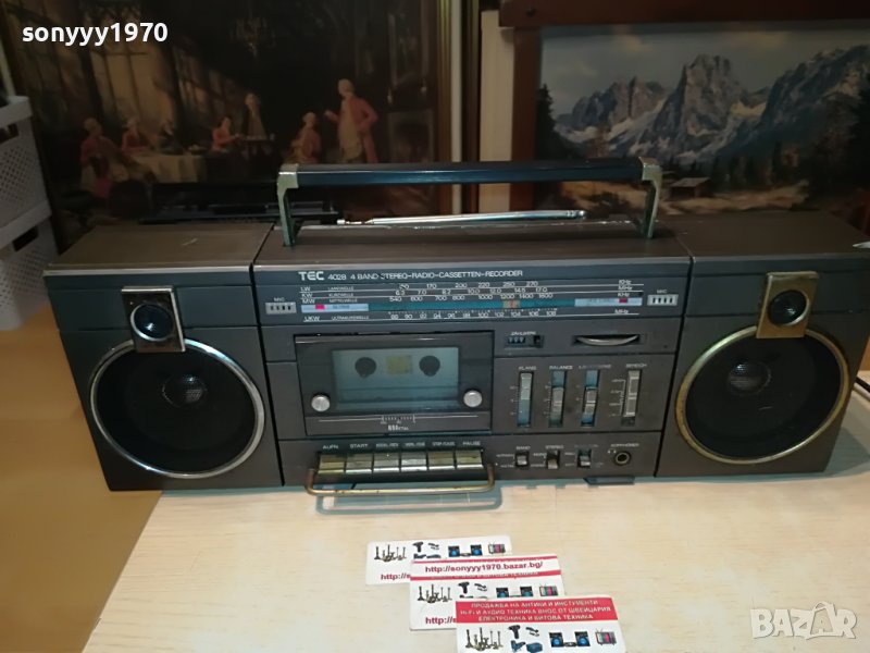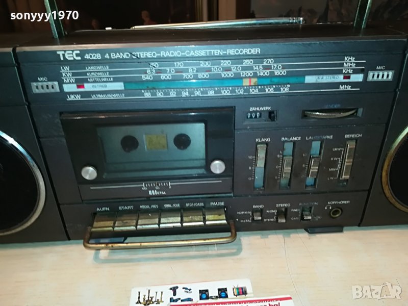 tec 4028-касетофон с забележки-работи и радио и касета-трябва му почистване на плъзгачите има пръщене-буксата за 220в отзад е потънала навътре-пращаме със спиди или еконт с преглед и тест след превод на капаро за куриерската услуга поради зачестили некоректни потребители-поръчки само тук в саита! по телефона и със смс не! краини цени! бартери не правиме! ПАРИ НЕ ВРЪЩАМЕ! всеки ден нови неща-още 2-3 наши обяви тук
