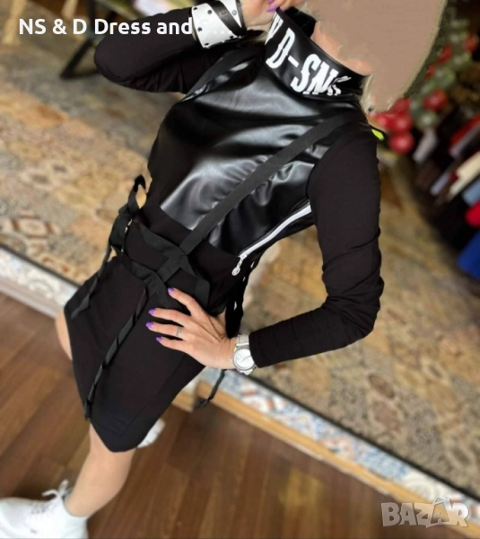 Дамска атрактивна луксозна рокля с подвижна кожена част → Обява 39143152
