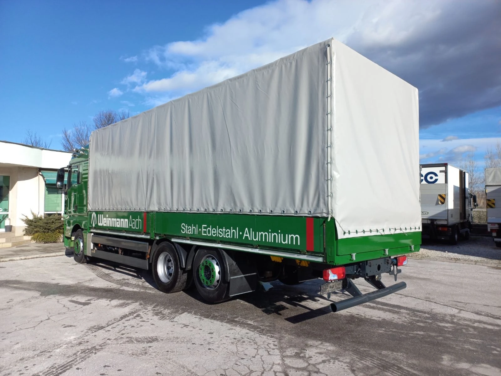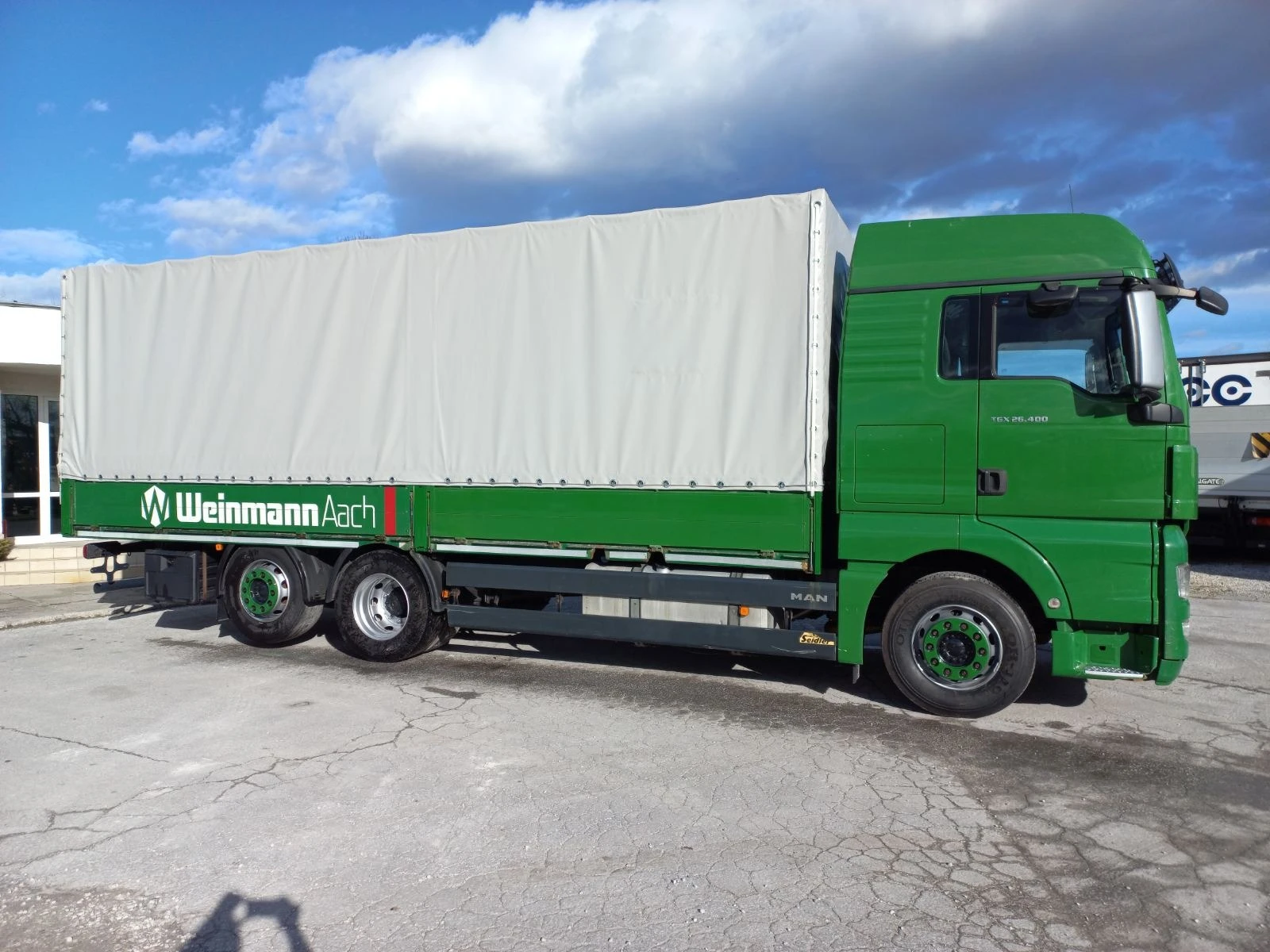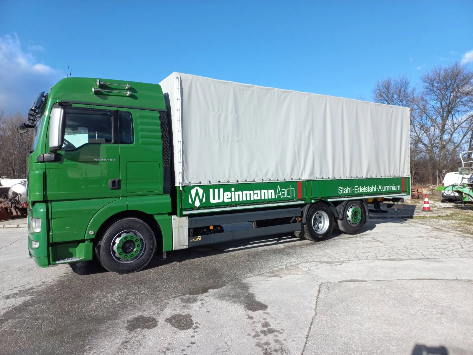 " MAN TGX 26. 400 6x2 " , EURO 5 EEV - двигател, RETARDER , климатик , печка , 2 легла, 3 ос буге и завиваща, таван на щора, нов брезент, гуми 315/70R22. 5 , размери - 7, 70 / 2, 49 / 2, 50 м , общо тегло - 26 000 кг , тара - 10 600 кг ,