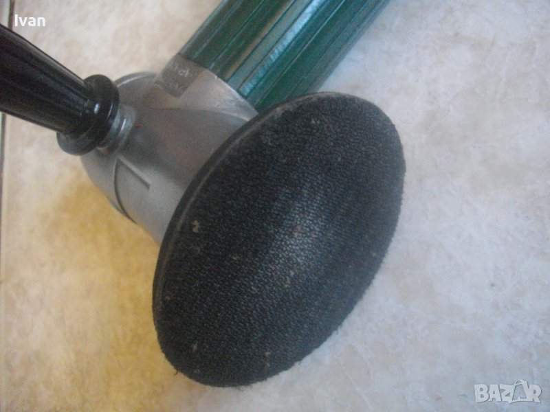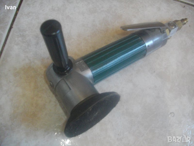 Почти нов, в ОТЛИЧНО техническо/работно състояние. Производство маркирано/вписано - оригинално японско - Made in JAPAN. Работна пита/плот - кръгъл - размер ф 108 мм. Тип Велкро - със амозалепващи елементи ,които нямат никакво износване и държат здраво и стабилно шкурка. Машината е с олекотен дизайн и ергономично тегло. Малка, удобна и ефективна при работа. Поставен оригинален японски адаптер/бърза връзка за скачване с маркуч на компресор. Адаптера е с регулатор на налягането. Материал - бронз/алуминий. Спусък метален дълъг и удобен, с инокс неръждавейка покритие.Метално тяло на машината с ПВЦ покритие/тип гума.Метална глава. Странична държка - твърда пластмаса бакелит. Цялостна дължина на машината с адаптера отзад - 240 мм, диаметър на машината - ф 40 мм. Тегло - под 1,0 кг. Цена на машината - 249 лв. Твърда цена, не подлежи на никакъв коментар.