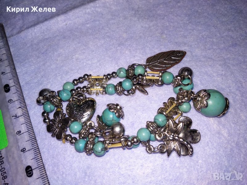 КРАСИВА ФЛОРАЛНА ЛАСТИЧНА МОДНА ЛЯТНА АРТ ГРИВНА ПОСРЕБРЕНА ТЮРКОАЗЕН ТИП 34777